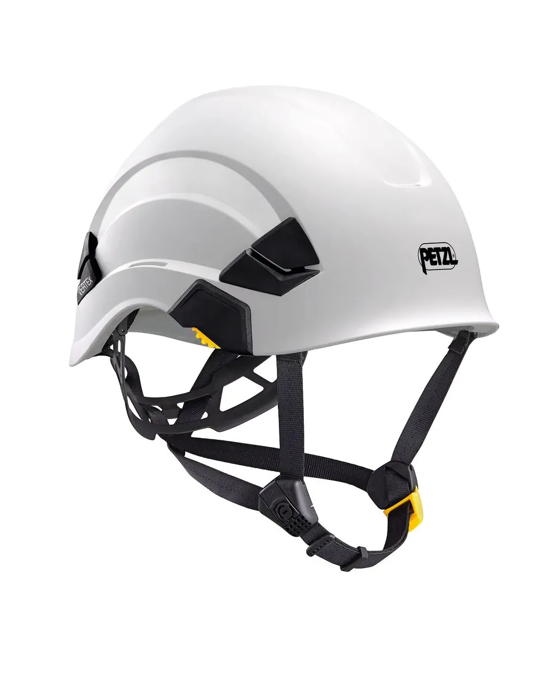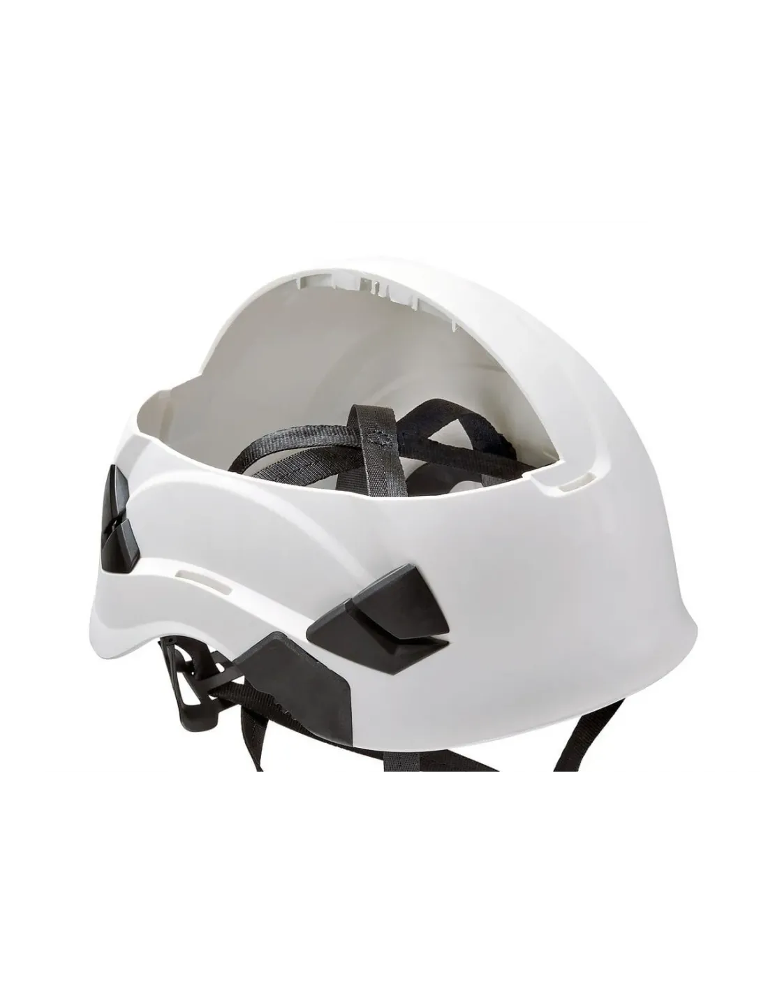- DUAL chinstrap allows the worker to adjust chinstrap strength in order to adapt the helmet to different environments: work at height (EN 12492) or on the ground (EN 397). The clip has two positions, corresponding to two uses: high strength, limiting the risk of losing the helmet during a fall, and low strength, limiting the risk of strangulation if the helmet is snagged while the user is on the ground