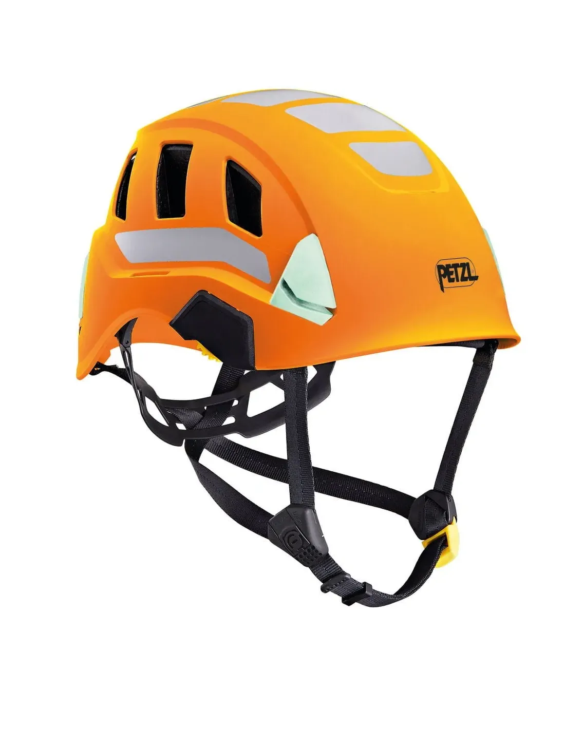 • DUAL chinstrap allows the worker to adjust chinstrap strength in order to adapt the helmet to different environments: work at height (EN 12492) or on the ground (EN 397). The clip has two positions, corresponding to these two uses: high strength, limiting the risk of losing the helmet during a fall, and low strength, limiting the risk of strangulation if the helmet is snagged while the user is on the ground