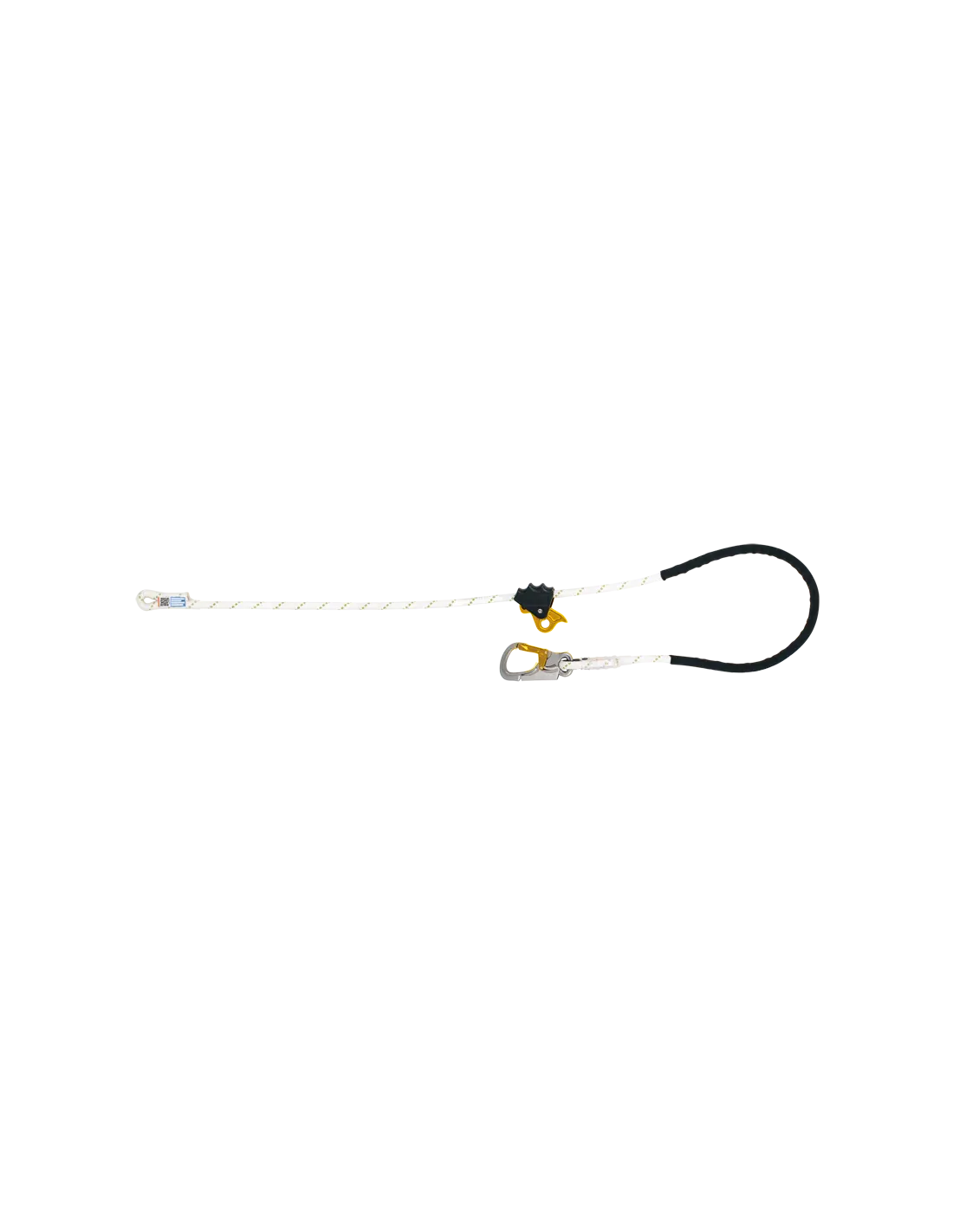 Adjustable work positioning lanyard in 12.5mm semi-static rope.