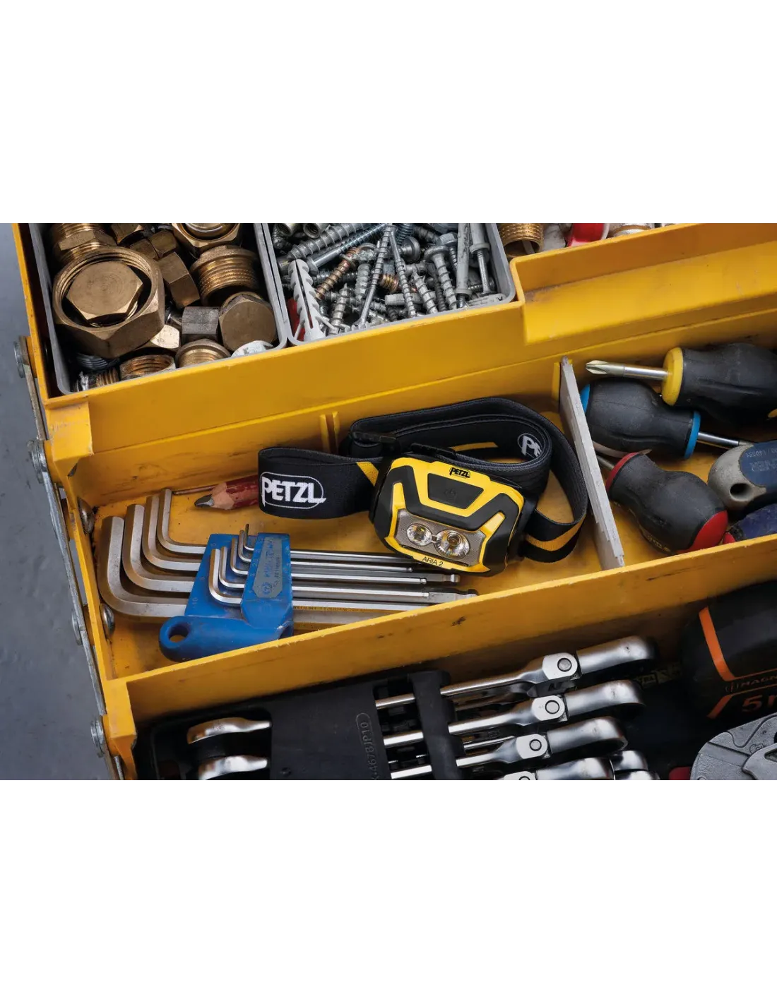 Casting 450 lumens, the ARIA 2 compact headlamp was specifically designed to be used by tradespeople and maintenance professionals. Durable, it is fall and impact resistant. It is also waterproof and dustproof, making it suitable for various work conditions. Easy to use, with a single button for controlling all lamp functions. The wide, uniform beam provides comfortable proximity lighting and the mixed beam makes moving around easier. It is convenient and can be worn on the head, around the neck, and on different types of helmets, using mounting plates that are available as accessories. ARIA 2 comes with three standard batteries and is also compatible with the CORE rechargeable battery, with its HYBRID CONCEPT design.