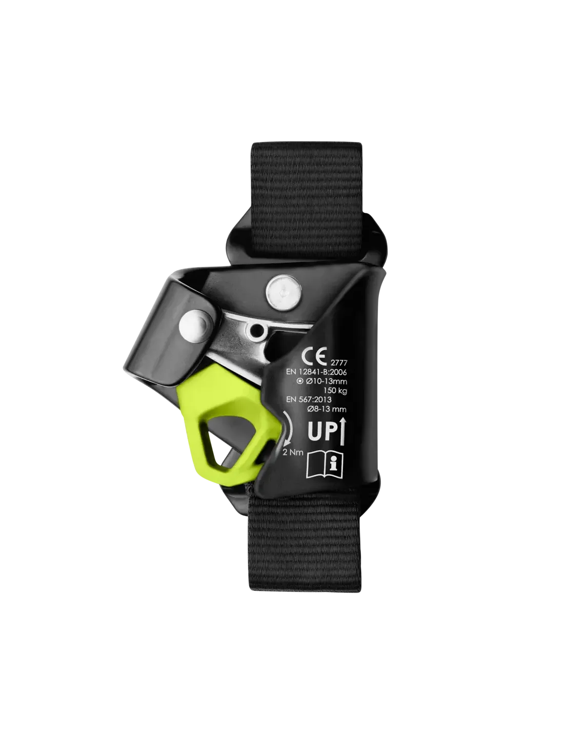 Compact chest ascender for efficient and fatigue-free climbing on the rope. The ascender can be opened with a simple movement. The modular construction with the fastening plate and the textile fastening loops allows the integration into different chest harness systems.