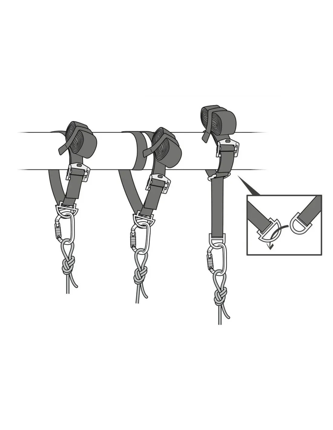 - Adjustment buckle for adjusting strap length as required for setting up the anchorage