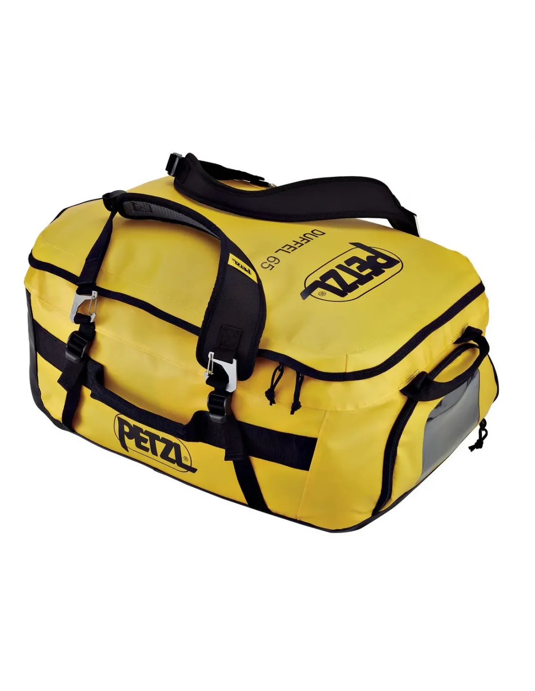 Designed to be carried in multiple ways, DUFFEL 65 is a convenient, ergonomic bag with a volume of 65 liters. The back and shoulder straps are padded for comfort when used as a backpack. Versatile, it can be carried in multiple ways with removable shoulder straps. The large opening allows easy access to equipment, including two pockets in the inner flap and a large side pocket for a helmet or shoes. A large transparent area allows rapid identification of the bag. It is constructed of high-strength TPU tarp material for intensive use. Available in two colors: yellow/black and black.