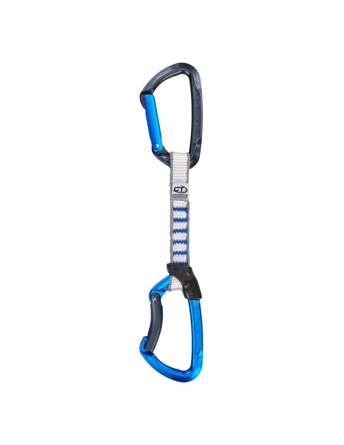 - equipado con mosquetones de forma clásica y nariz sin enganches para facilitar la inserción/extracción de la cuerda;
