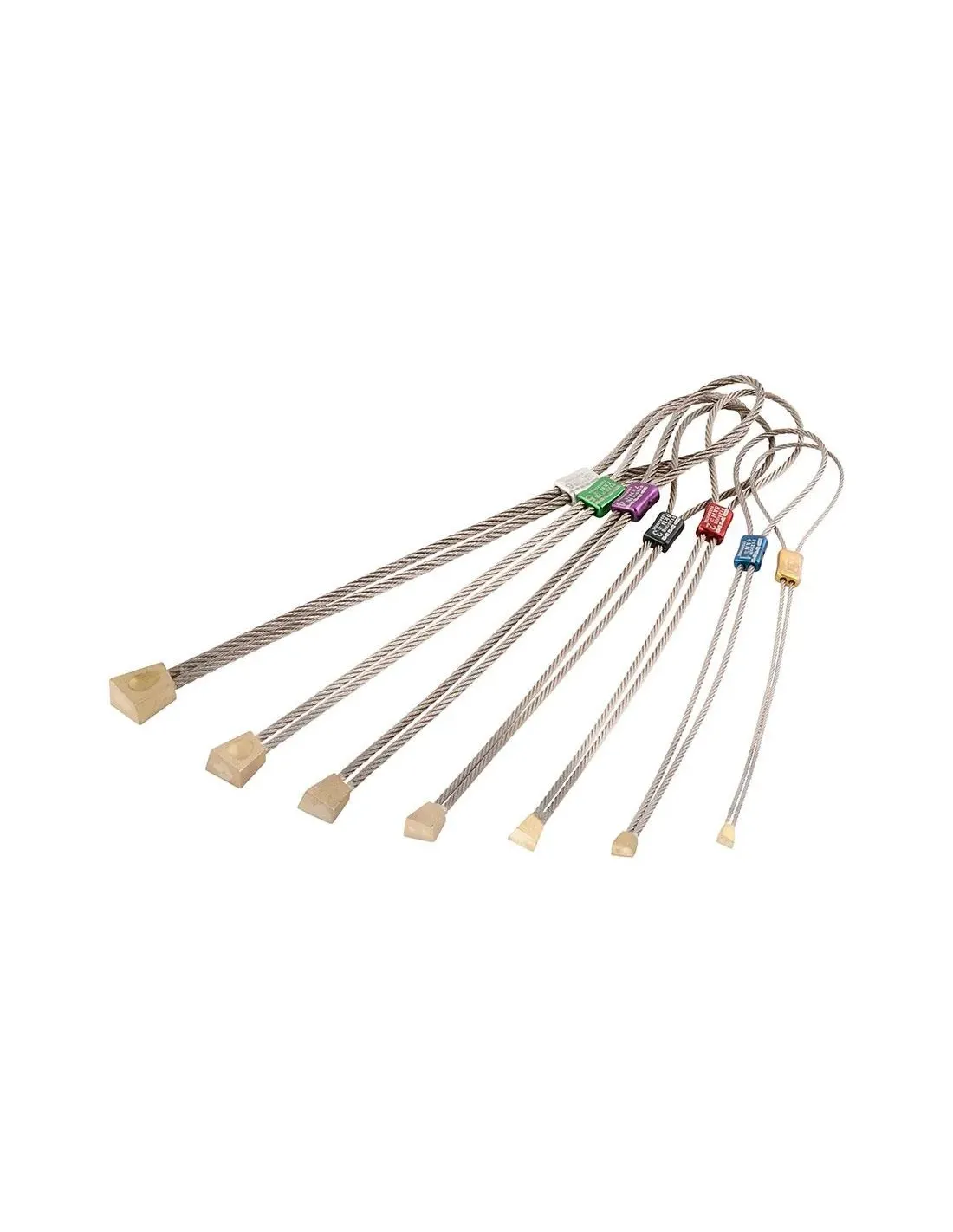 Brass Offsets are crucial for protecting small flared cracks, often fitting perfectly where nothing else will go. The brass used for the head of the nut is soft enough to bite into placements, but hard enough to resist deforming and pulling through. Wires are soldered directly into the nut head, allowing a thicker wire to be used and increasing overall strength. The colour coded swage gives easy size selection and allows the Brass Offset to self equalise when loaded, making the most of marginal placements.