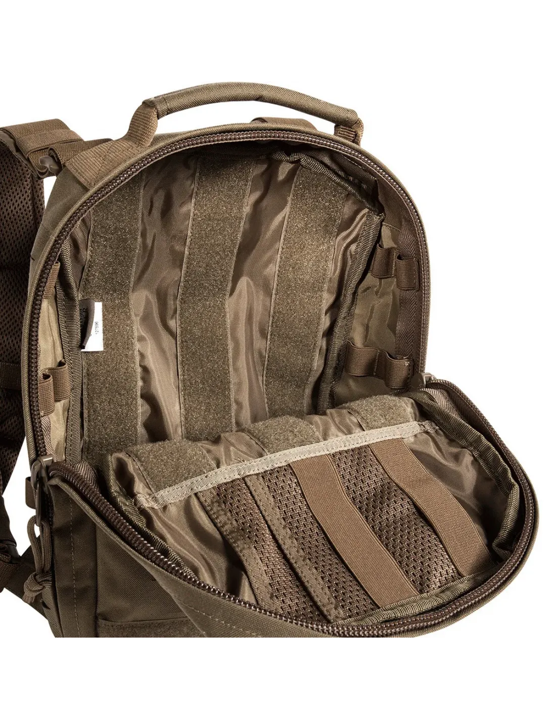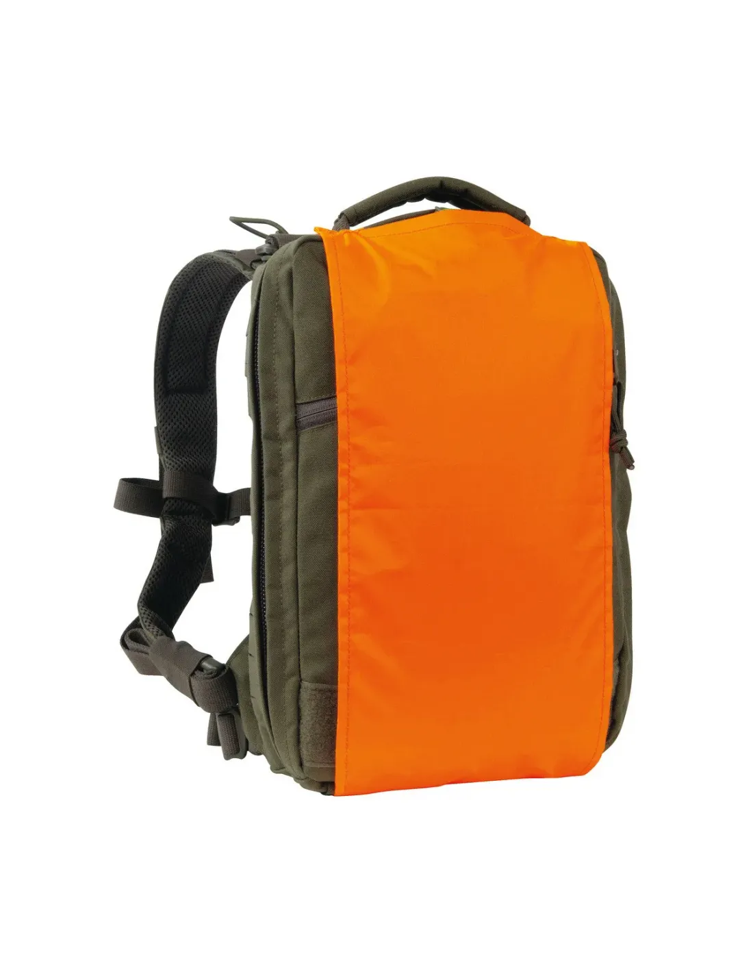 El sistema MOLLE en la parte frontal y los lados está cortado con láser. Las correas de los hombros se pueden quitar y guardar en un bolsillo asegurado con gancho y bucle en la parte trasera. La mochila viene con correas para que pueda adaptarse a un portaplacas o chaleco. Diseñada especialmente para su uso en sistemas de portaplacas.