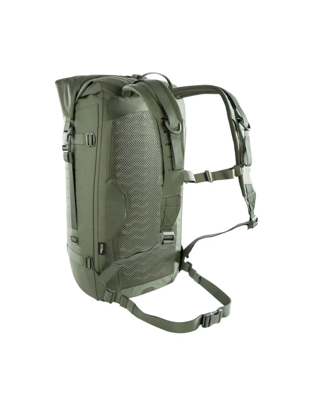 El TT Sentinel 35 WP es adecuado para equipos ligeros, posiblemente voluminosos. Tiene un cierre enrollable y se puede comprimir con correas completamente circunferenciales si es necesario. MOLLE en diseño cortado con láser en los lados permite personalización. Un sistema de correas en la parte frontal se utiliza para sostener equipo adicional.