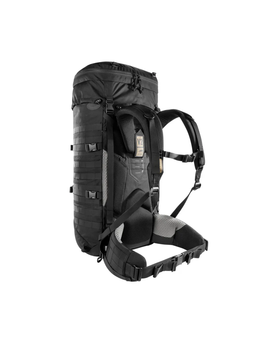 El volumen del TT Base Pack 75 se puede expandir hasta 90 litros quitando la tapa y usando el protector de nieve enrollable. La cavidad para la cabeza moldeada asegura libertad de movimiento cuando está muy cargado. La mochila cuenta con MOLLE en todas las superficies de fijación importantes.