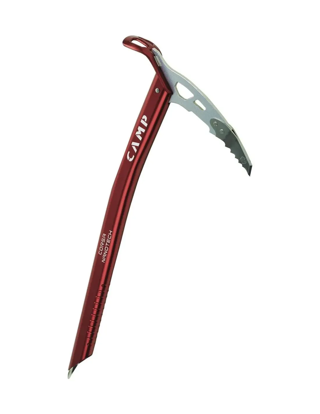 El Corsa Nanotech es el piolet de montañismo más avanzado del mercado. Combina las propiedades ultraligeras de la construcción de aluminio con una punta y púa reforzadas con acero Sandvik Nanoflex para un agarre sólido en nieve dura y hielo. Los componentes de acero aumentan drásticamente el rendimiento de estos puntos críticos sin aumentar significativamente el peso del piolet. El eje de curva única proporciona un espacio adicional sin interferir con el rendimiento al caminar o clavar. Un tapón de púa de nylon ligero mantiene la nieve fuera del eje. El agarre está mecanizado para un buen manejo y una pequeña ranura en la cabeza permite una integración perfecta con la correa Corsa (se vende por separado).