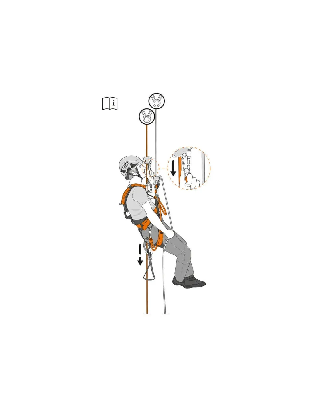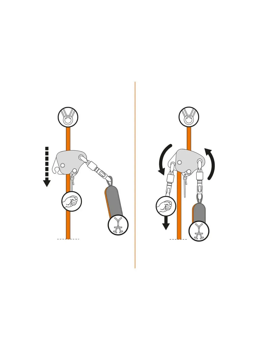 Dispositivo anticaídas específicamente diseñado para su uso en trabajos de acceso por cuerda, cumpliendo con la norma EN 12841-A. Ha sido diseñado para permanecer constantemente posicionado por encima del usuario, minimizando así el factor de caída potencial al mínimo.