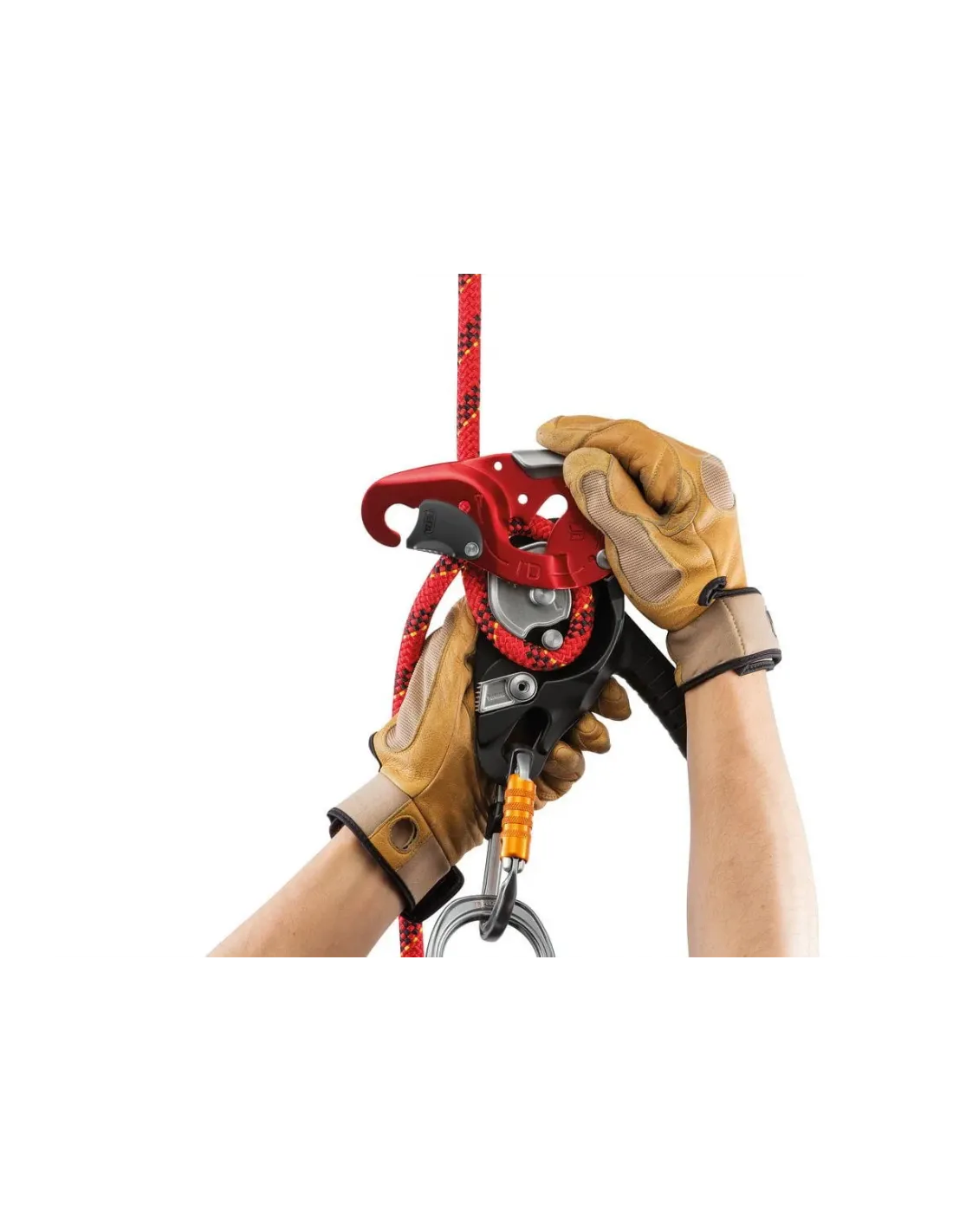 - el sistema AUTO-LOCK permite a los usuarios posicionarse sin tener que manipular el mango o bloquear el dispositivo: tan pronto como el usuario suelta el mango, la cuerda se bloquea automáticamente en el dispositivo. El sistema de retorno automático en el mango limita el riesgo de que el dispositivo se enganche accidentalmente