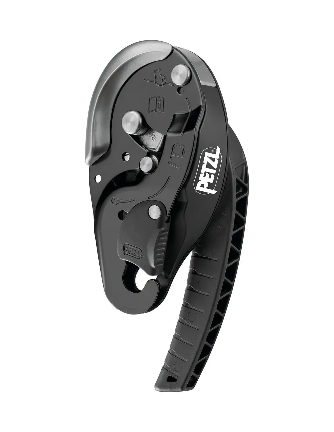 - el mango ergonómico permite liberar la cuerda y permite un control cómodo del descenso. Dos modos de descenso posibles: en la placa lateral o en el canal de fricción en forma de V